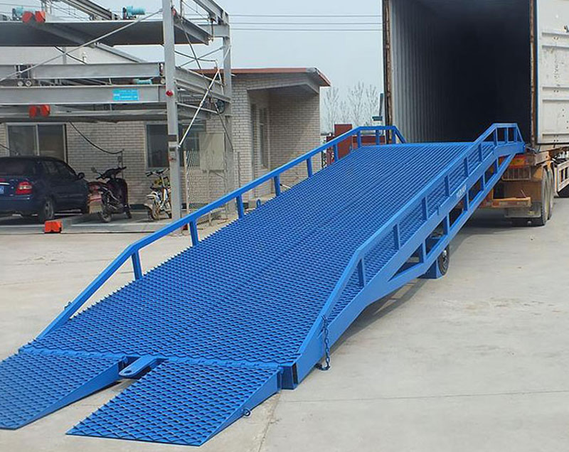 移動式液壓登車橋的可移動性,可滿足在不同場地進行裝卸作業。由高度錳鋼矩形管制作的承重梁,有著極高的剛性。坡面采用齒形鋼格板制作,具胡卓越的防滑性能。機身材料經過拋丸除銹處理,并采用耐腐涂料油漆,具有更好的耐銹效果。移動式登車橋采用手動泵作為起升動力,不需外接電源,方便室外使用。移動式液壓登車橋可幅提高物料裝卸速度,保障作業安全,是現在物流之理想輔助設備。